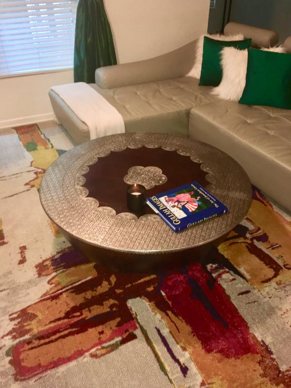 If liquid spills occur, prompt cleaning is advised. Camel bone, resin, mango wood & engineered woodprice. This unique, round wood coffee table would go well with any style, including the modern, farmhouse and boho! The table is crafted from tropical hardwood and supported by a hammered antique brass base, and the tabletop is covered with a handcrafted bone inlay. 10% coupon applied at checkout save 10% with coupon.
